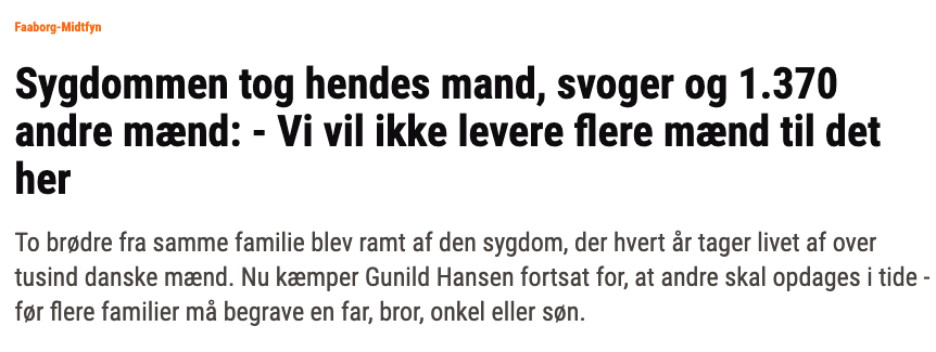 Før det døde Sørens bror også af prostatakræft og derfor er Gunild stor fortaler for bedre screening for prostatakræft og brugen af PSA-blodprøver ved egen læge.